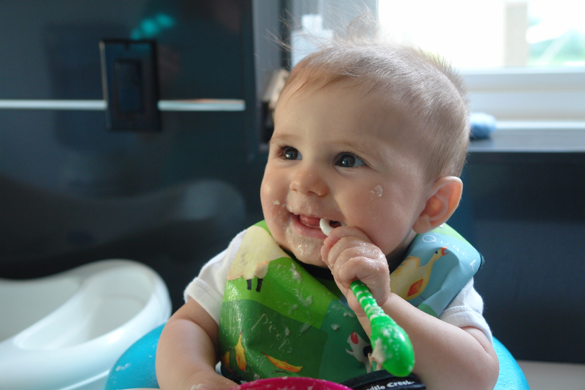 Our little 'sparrow' enjoys being spoon-fed - and we all enjoy feeding him.