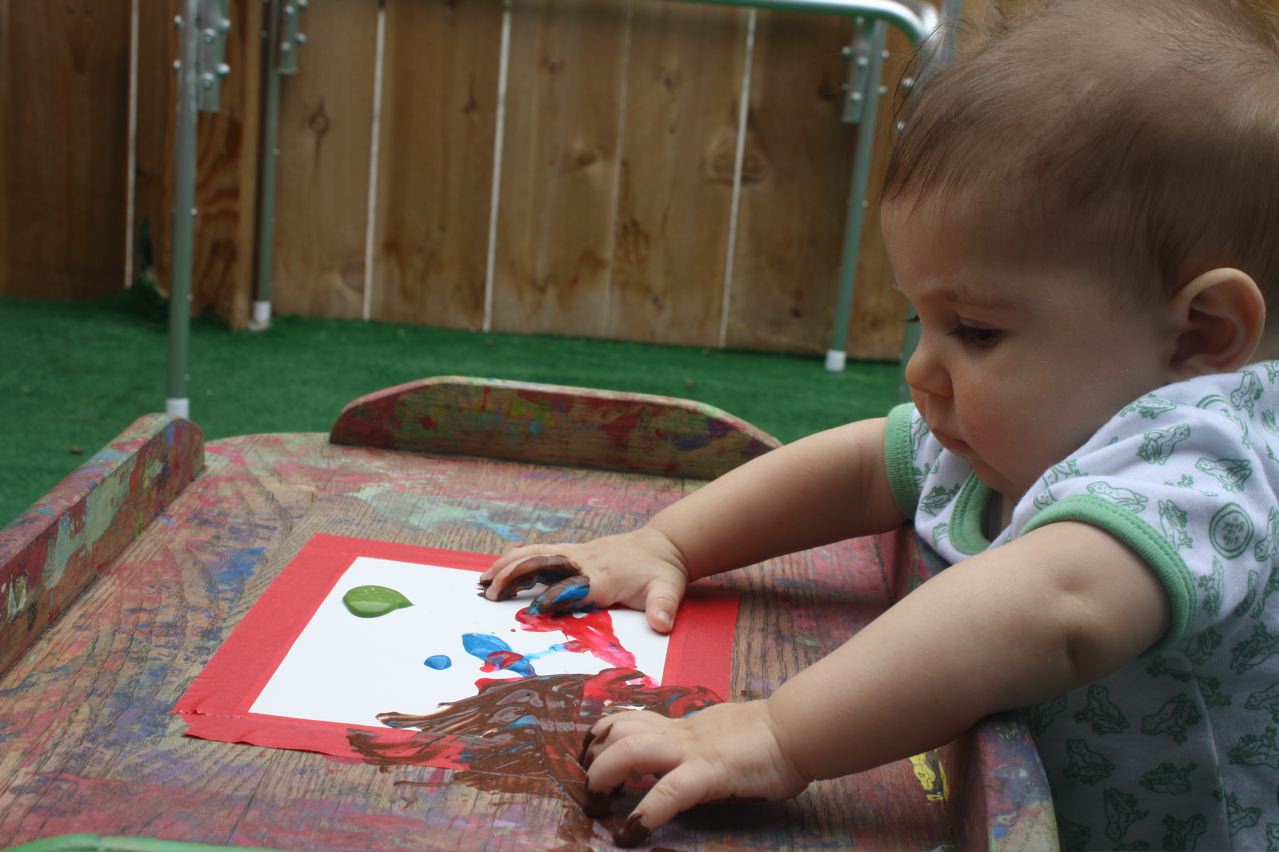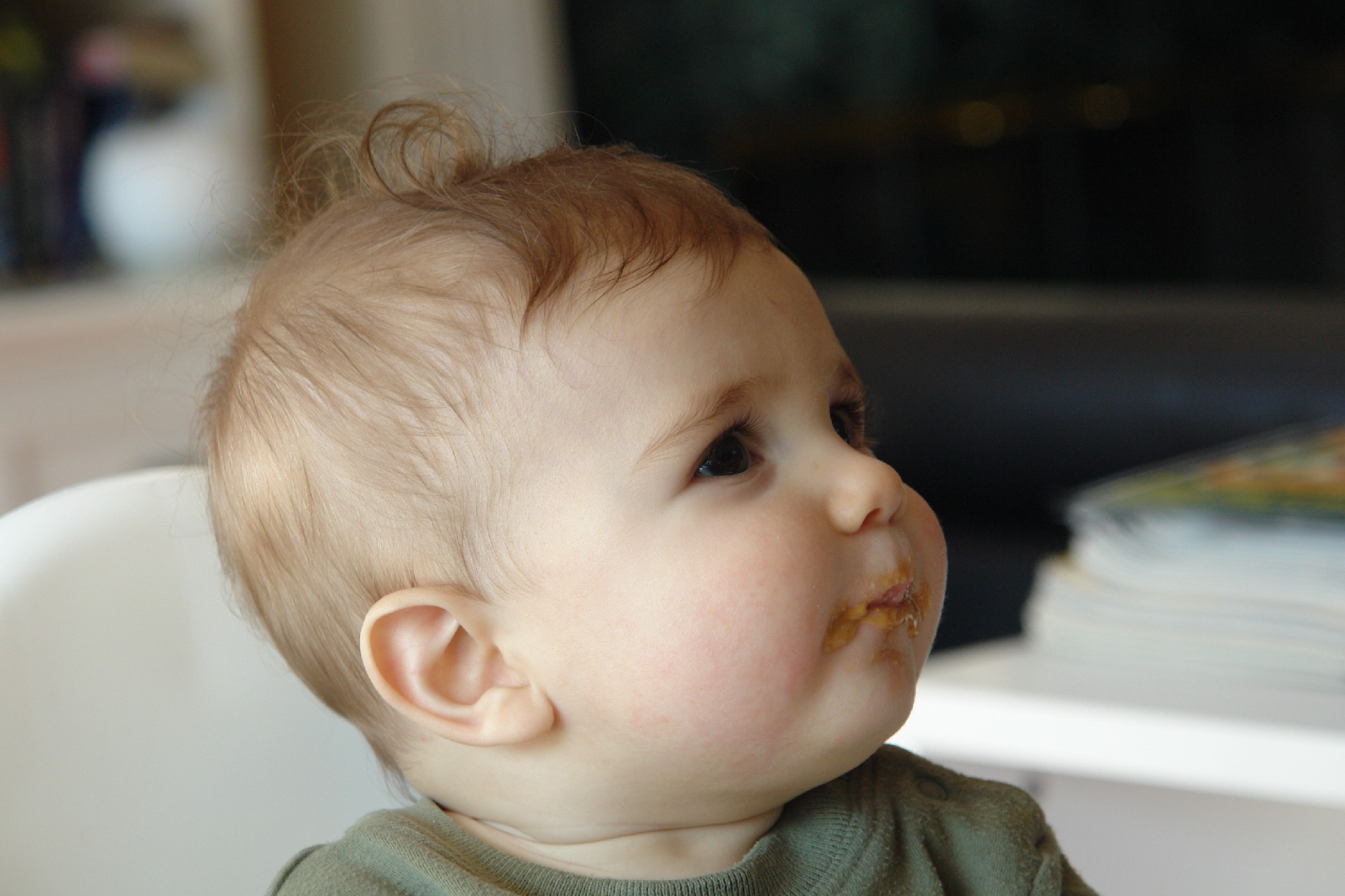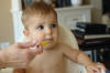 He had his first try at feeding himself which started with ..... BUT within a few minutes transformed to ....