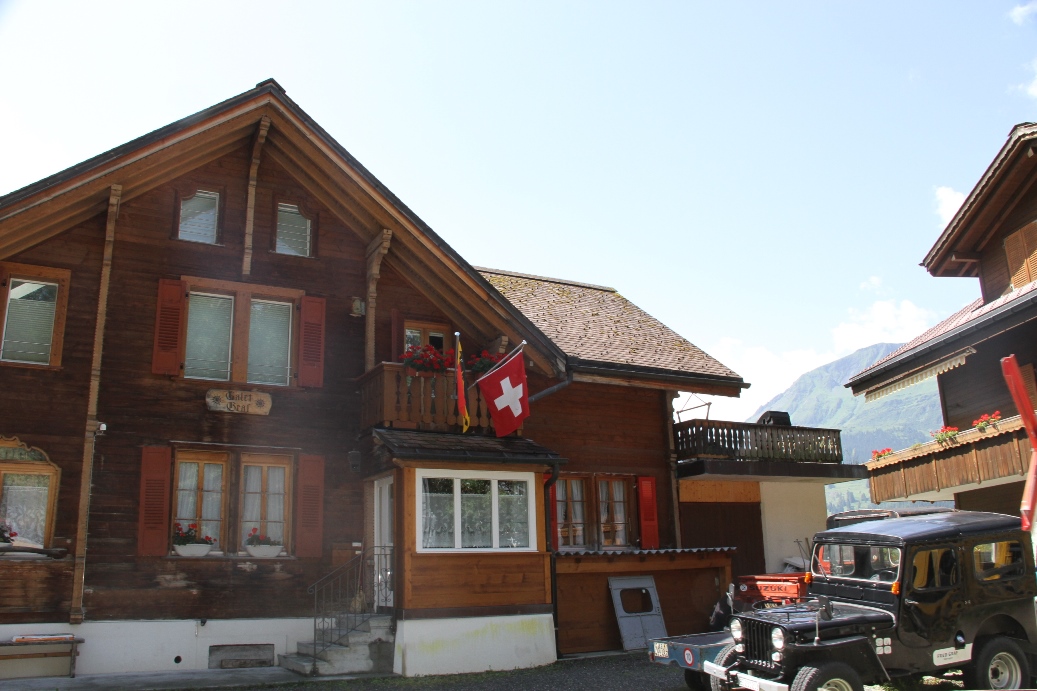 A little stop at Rinderhütte. While we were sitting on the bench the cows came to check on the intruders. I immediately jumped up to take some pictures. Here, father and son close and personal with Swiss cows.