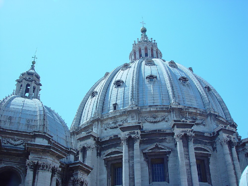 The main dome is flanked by two minor cupolas. The dome was designed my Michelangelo but not completed in his lifetime. |