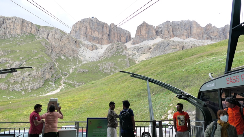 Cable car station beignning of the hike [left] - View towards Langkofel [rigth]