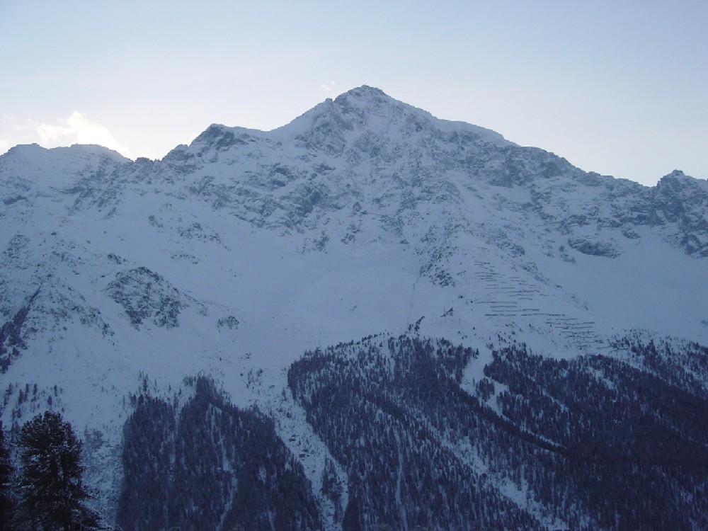 On our way to the Hintergrathütte we witnessed this huge ice avalanche coming down the East Face of Ortler. The cliff is probably 200m high. |