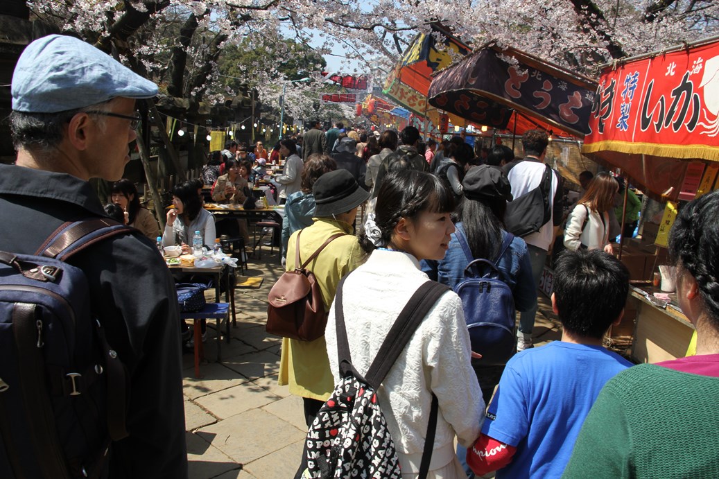 A visit to Ueno Park where the inhabitants of Tokyo celebrate the Cherry Blossom Festival, gathering on tarps for picnics and buying food from the cleanest street vendors I have ever seen, and overall enjoy the arrival of spring.