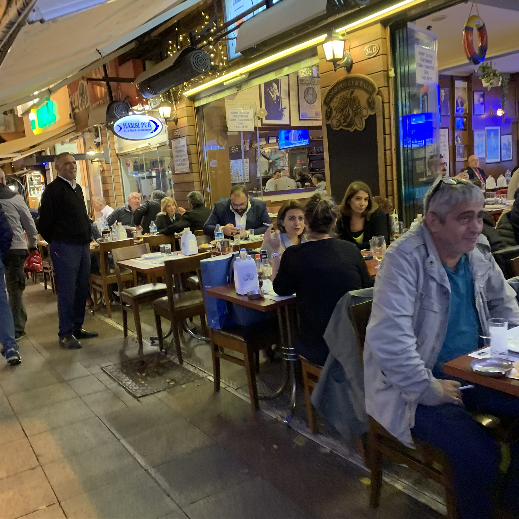 No one seems to be eating dinner at home in Istanbul. Streets are full of neighborhood restaurants and they all are busy.