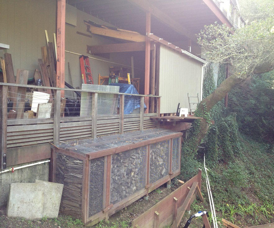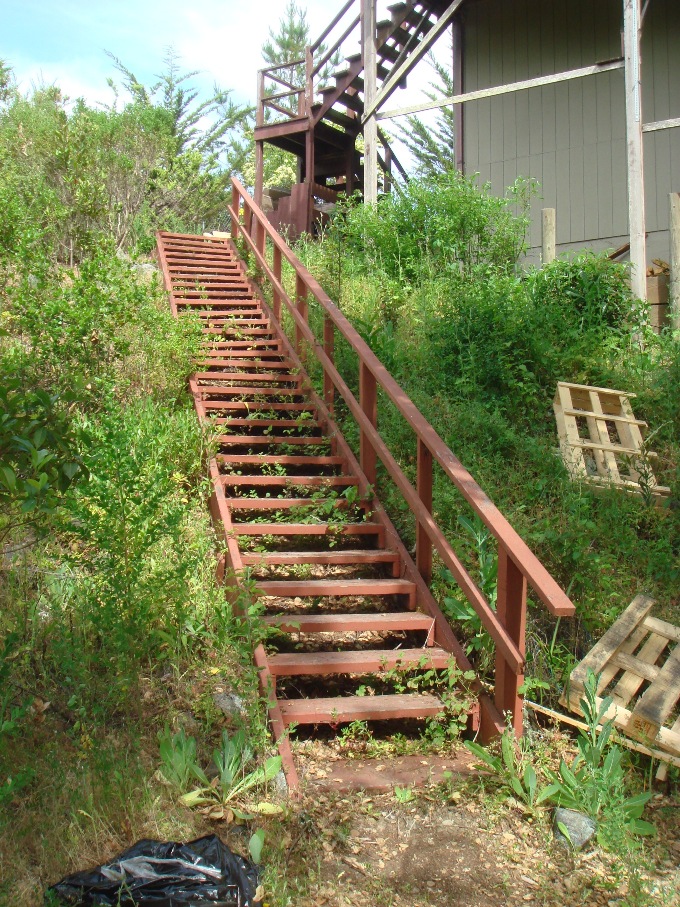 The old deck from the bedroom and the old staircase going to the back yard [below]