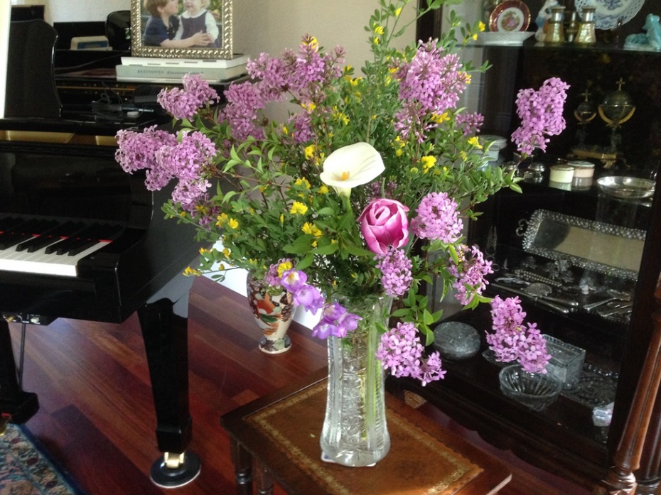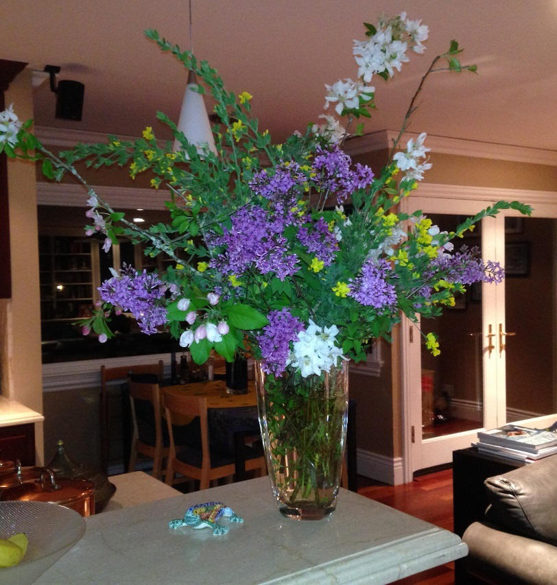 and some flowers including lilacs from the garden