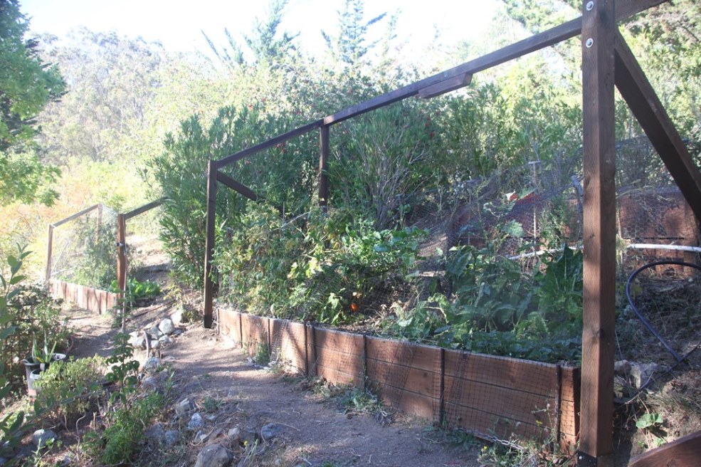 To create a flat planting environment Stephan had to build retaining walls and terraces.He purchased and delivered the wood in his 'truck"!