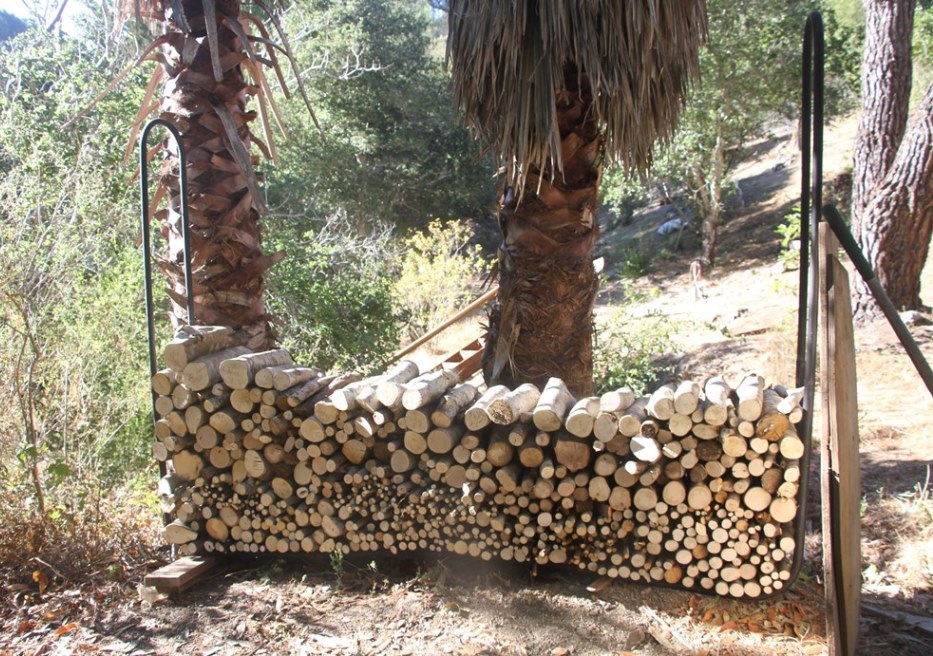 Stephan, the 'lumberjack', cutting and processing wood for the fireplace.