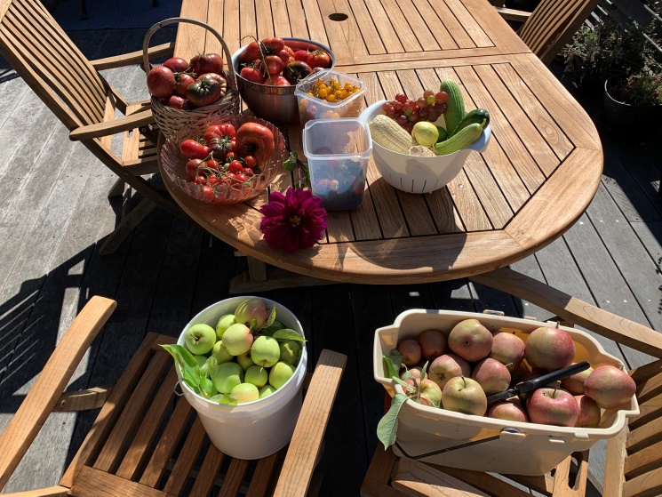 The crop was excellent this year. Tons of apples and blackberries and some grapes and strawberries.